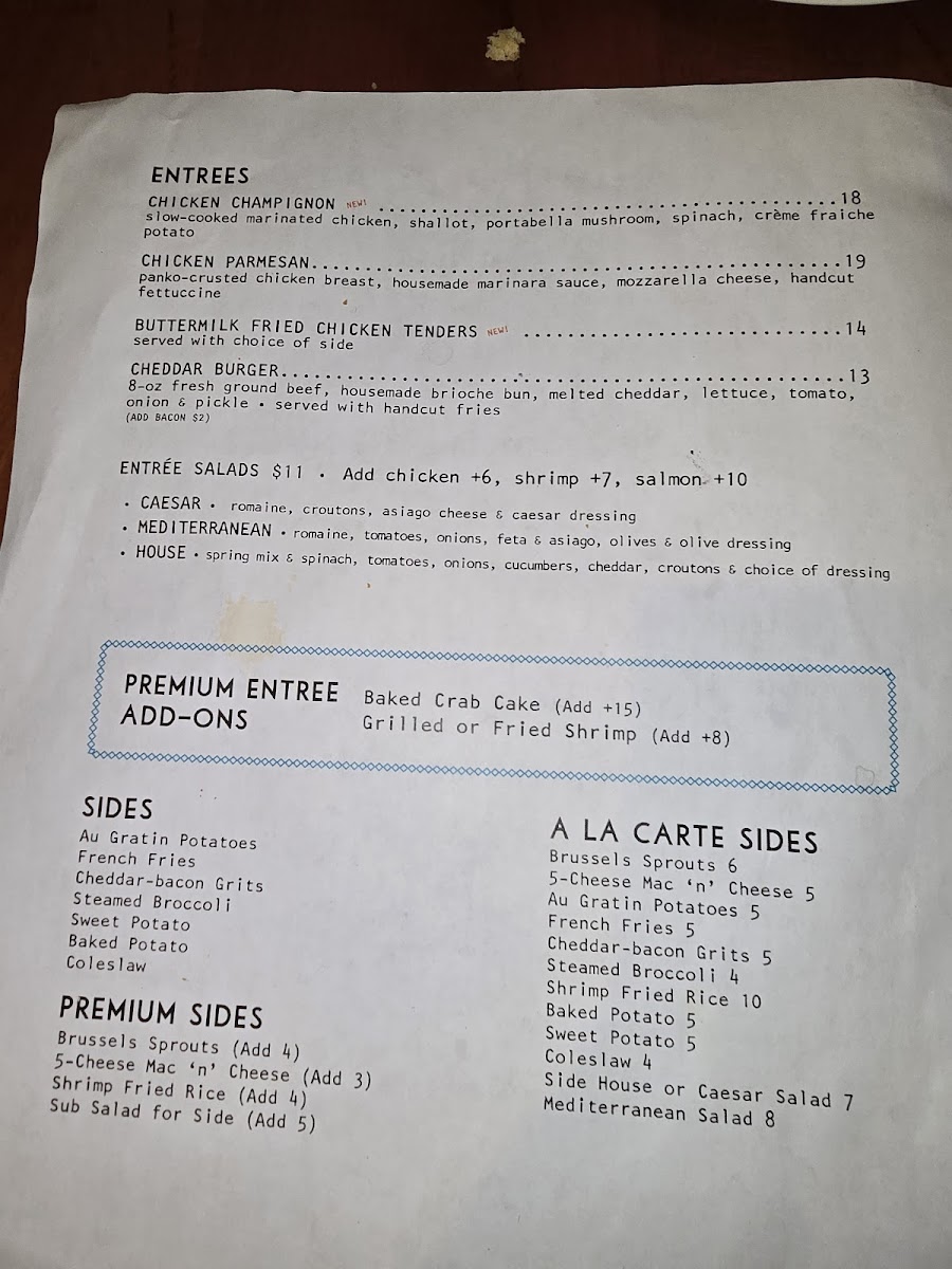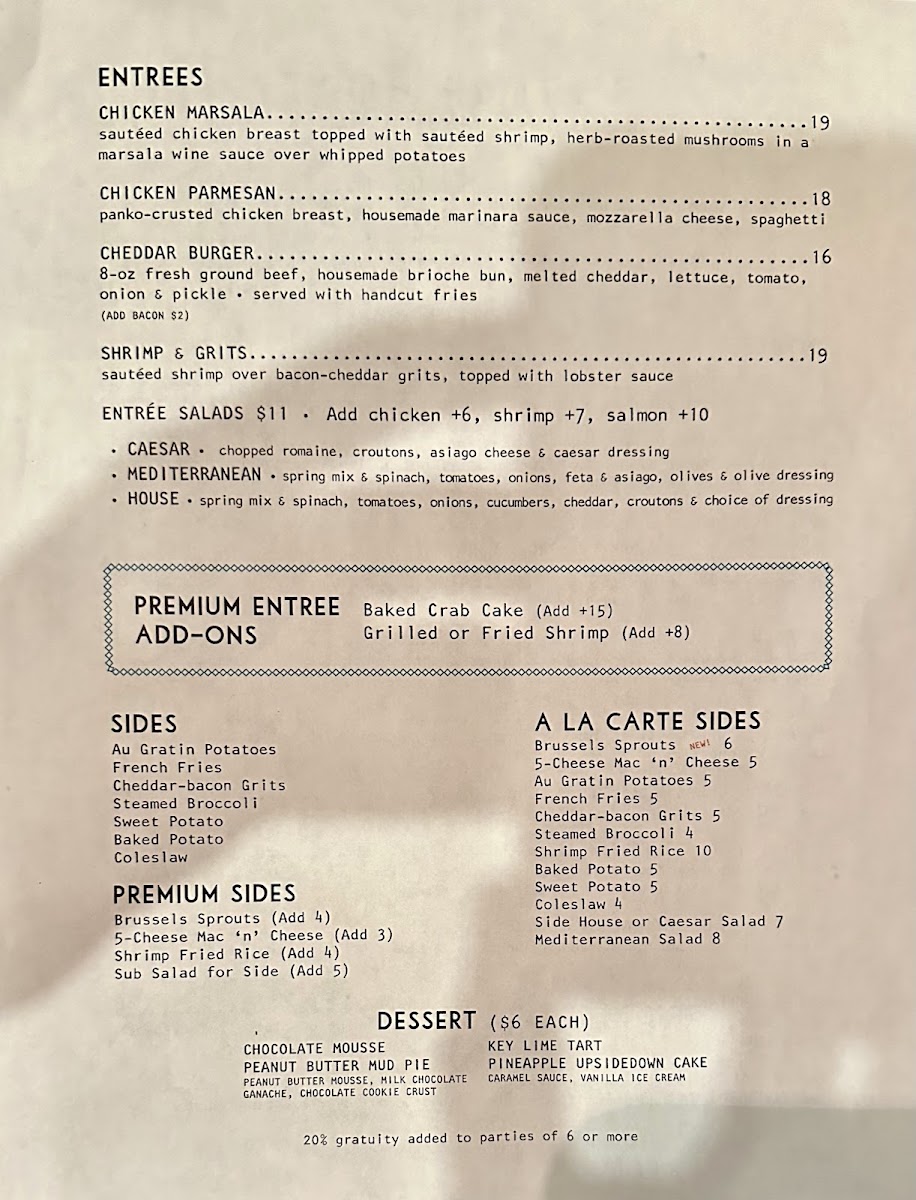 beef tenderloin, slow roasted & sliced served with whipped potatoes demi-glace, served with one side